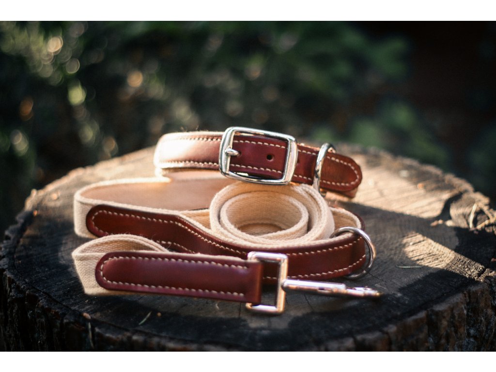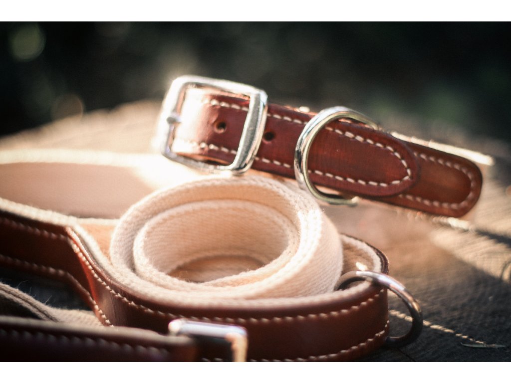 Set obojku a vodítka je pohodlný a pevný s koženou částí, která s časem získává vlastní patinu.
