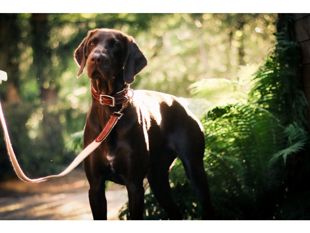 Ručně šitý kožený obojek s vodítkem, které vydrží roky společných dobrodružství. Kombinuje pravou hovězí kůži, pevný bavlněný popruh a nerezové kování. Každý kus vzniká ručně v malé Brdské dílničce.