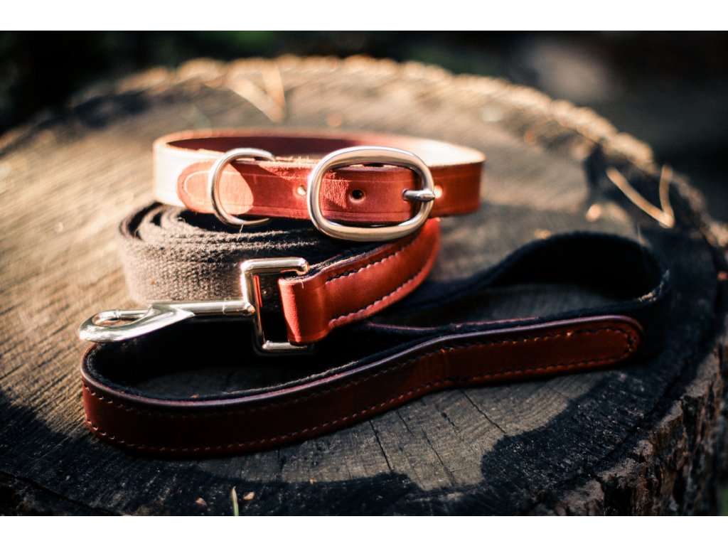 Ručně šité kožené vodítko, které vydrží roky společných dobrodružství. Kombinuje pravou hovězí kůži, pevný bavlněný popruh a nerezové kování. Každý kus vzniká ručně v malé Brdské dílničce.